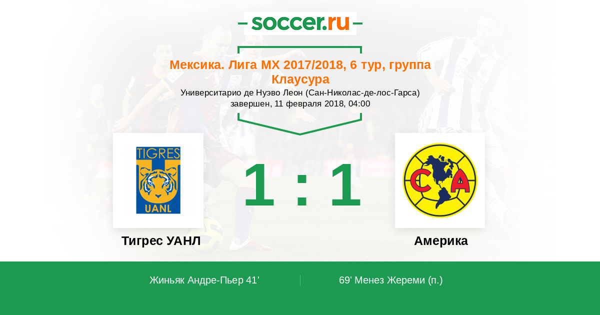 41' (1:0) Жиньяк Андре-Пьер (10) (Родригес Луис (28))