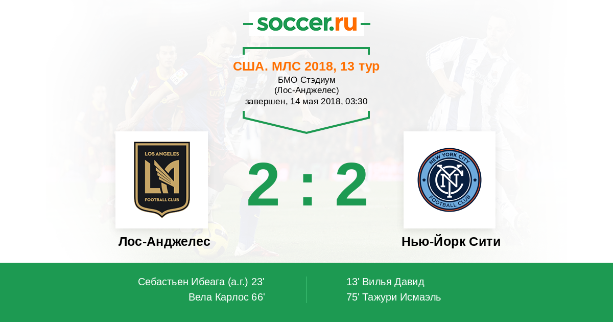 66' (2:1) Вела Карлос (10) (Кайе Марк (14))