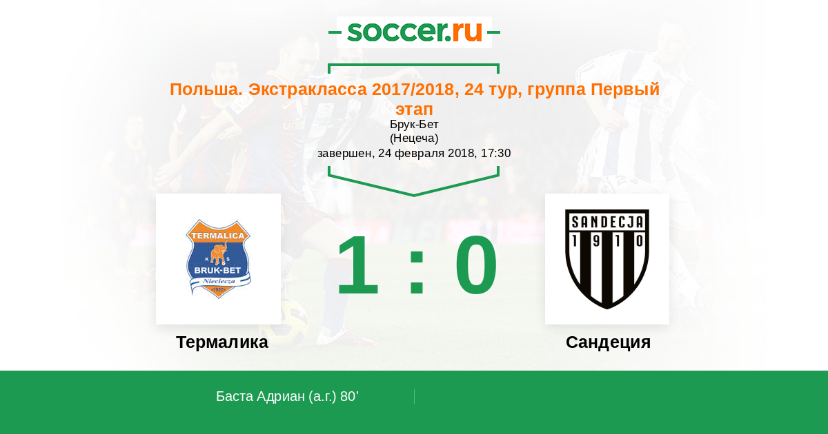 80' (1:0) Автогол Баста Адриан (17)