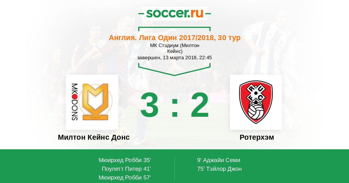 35' (1:1) Мюирхед Робби (16) (Анеке Чуквуэмека (10))