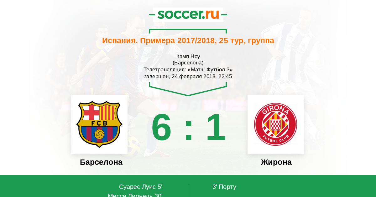 30' (2:1) Месси Лионель (10) (Суарес Луис (9))