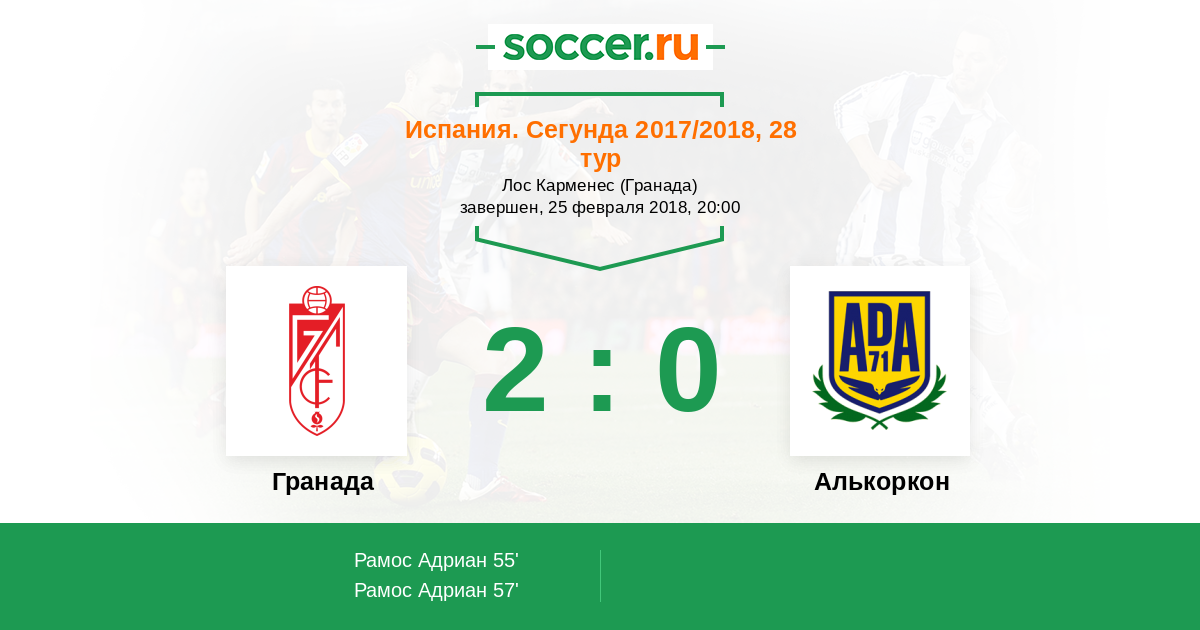 57' (2:0) Рамос Адриан (7) (Пенья Серхио (22))