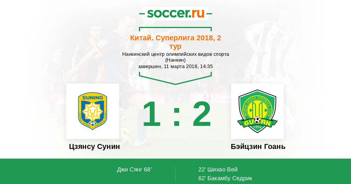 22' (0:1) Шихао Вей (7) (Виера Хонатан (23))