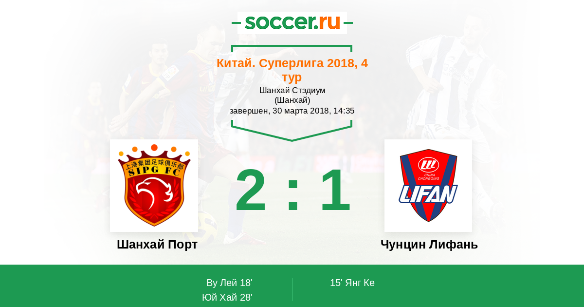 15' (0:1) Янг Ке (29) (Фернандиньо да Силва (30))
