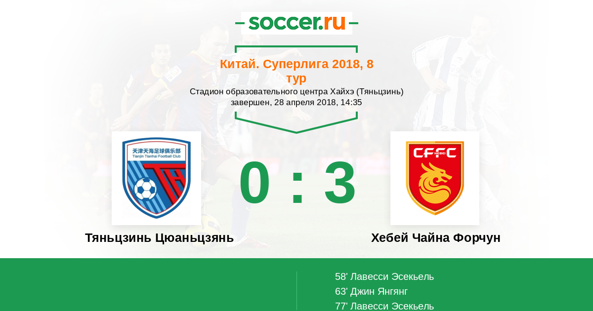 63' (0:2) Джин Янгянг (4) (Лавесси Эсекьель (22))