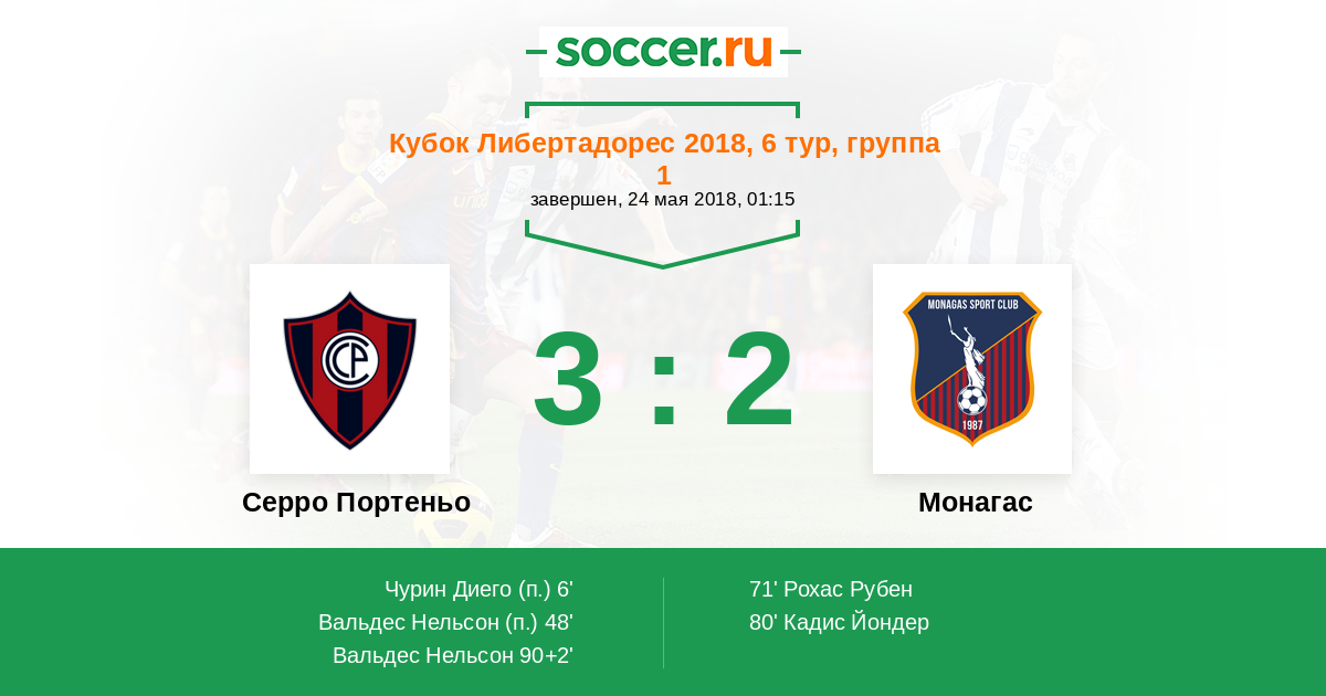 71' (2:1) Рохас Рубен (18)