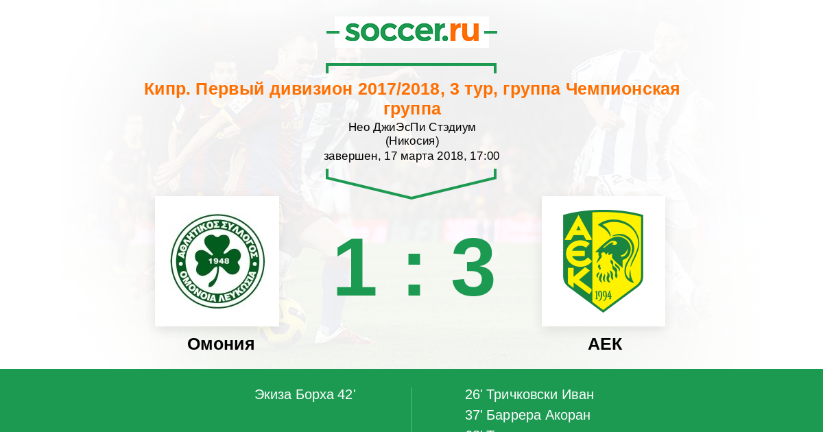 Запасные: 11 Тете (с 60'), 2 Сория Карлес (с 76'), 18 Мурильо (с 86+1'), 1 Георгаллидес Антонис, 10 Томас Жоан, 22 Малоку Эльвир, 28 Панайидис Иоаннис, 35 Панков Радован, 40 Михаэль Яннис, 80 Рушиас Онисифорос