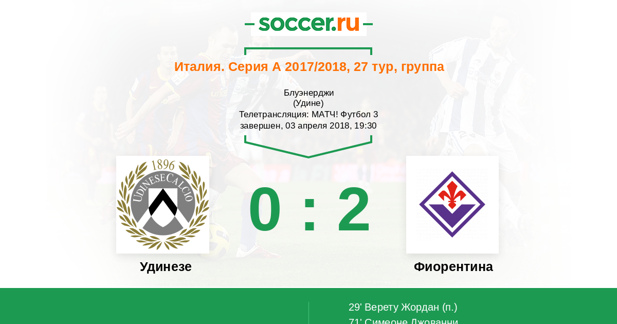 71' (0:2) Симеоне Джованни (9) (Кьеза Федерико (25))