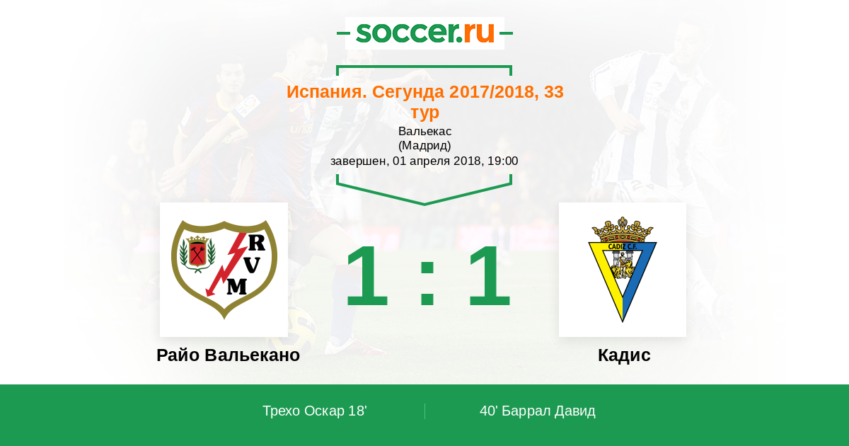 18' (1:0) Трехо Оскар (8) (Фран Бельтран (29))