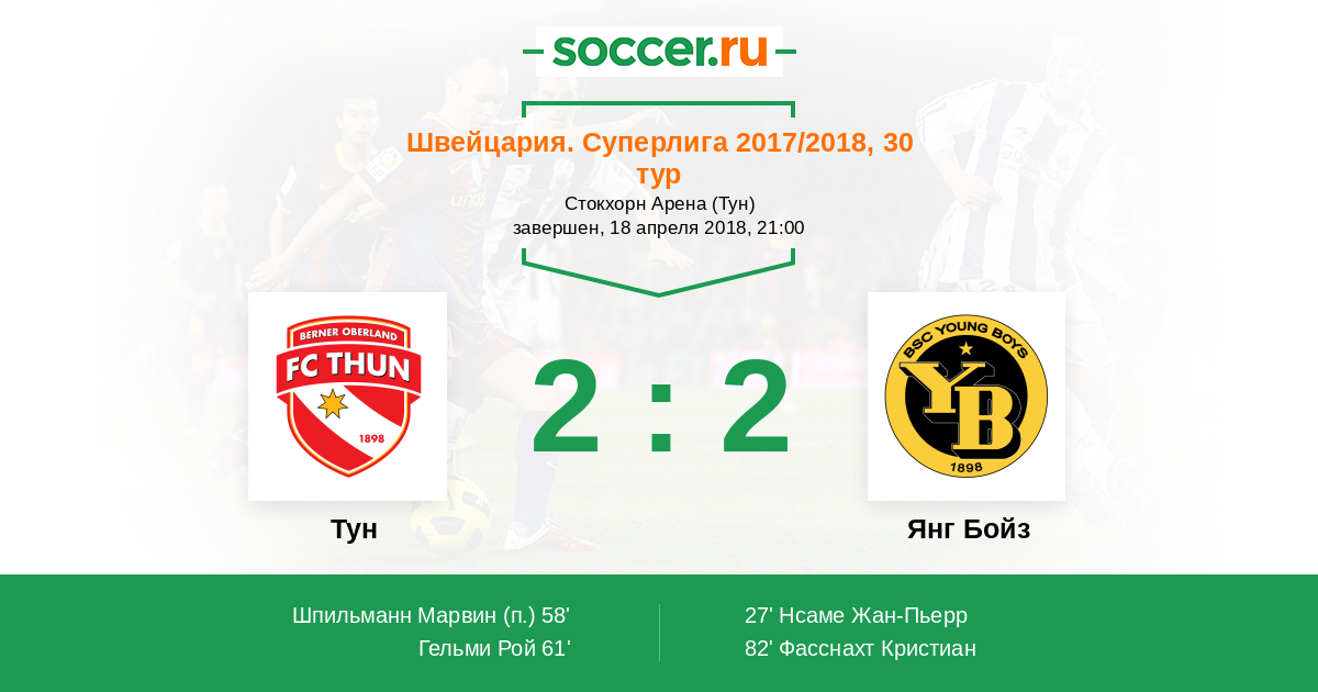 82' (2:2) Фасснахт Кристиан (16) (Бенито Лорис (23))