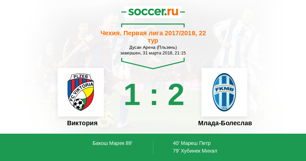 40' (0:1) Мареш Петр (17)