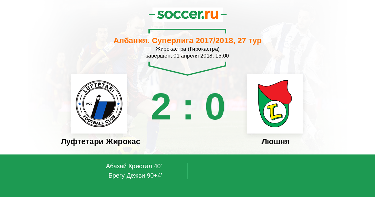 Запасные: Алуши Эргис (с 46'), Папа Энрико (с 46'), Мето Агим (с 83'), Бизхити Албан, Бейте Ибрахим, Пергджини Леонардо, Хаксиу Мелис