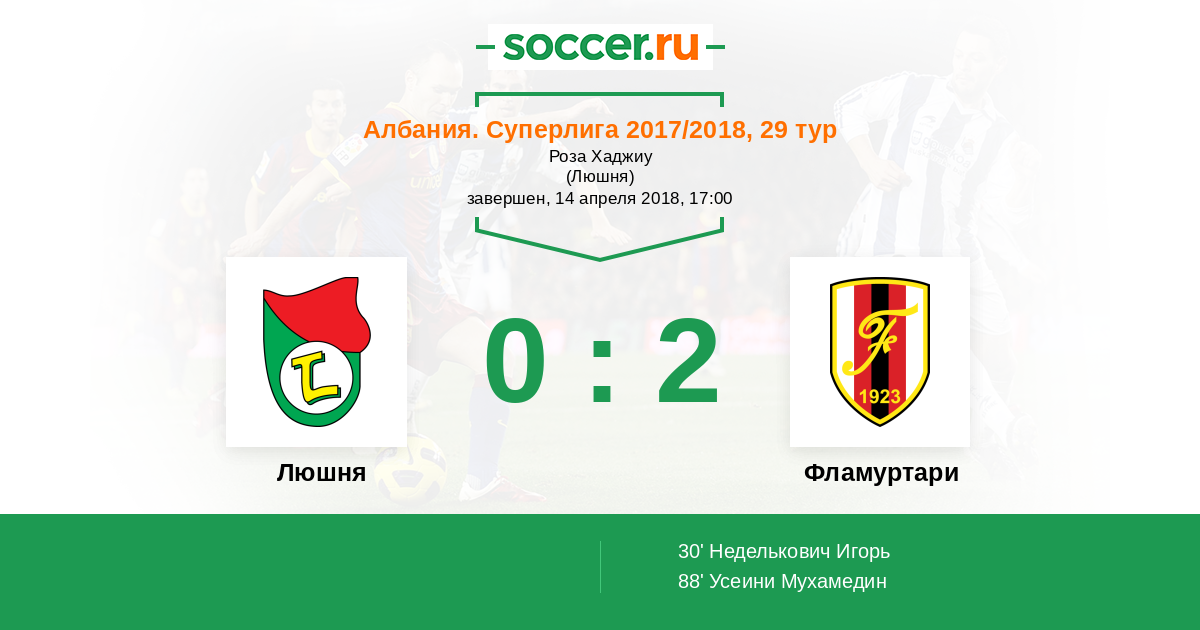 Запасные: Корреши Мариуш (с 52'), Чела Марко (с 78'), Хаксиу Мелис (с 83'), Мето Агим, Пергджини Леонардо, Спахо Микель, Адеми Редиоль