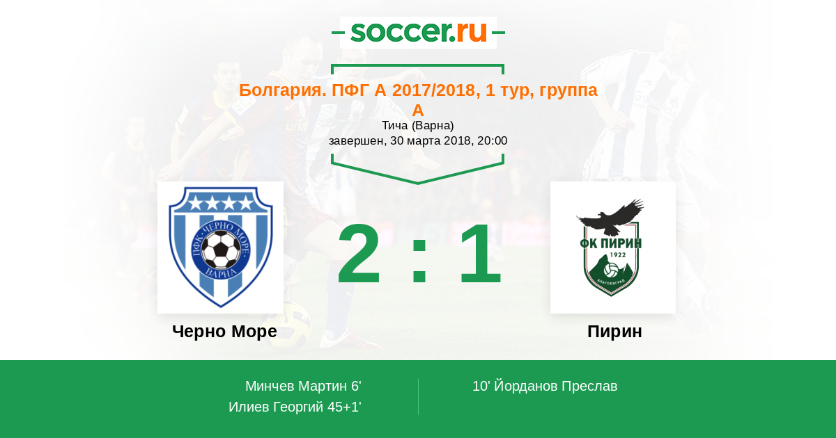 6' (1:0) Минчев Мартин (90)