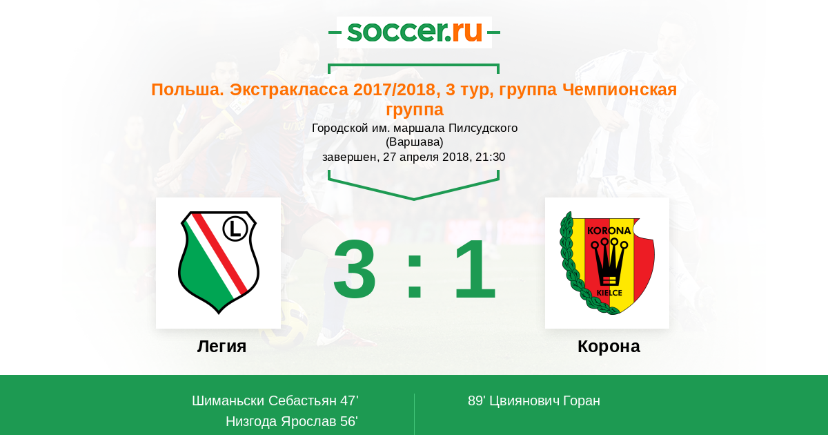 47' (1:0) Шиманьски Себастьян (53) (Низгода Ярослав (11))