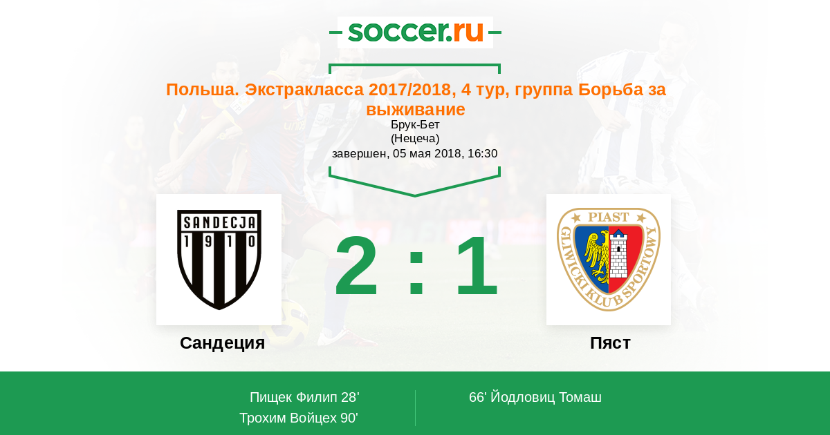 28' (1:0) Пищек Филип (26) (Трохим Войцех (10))