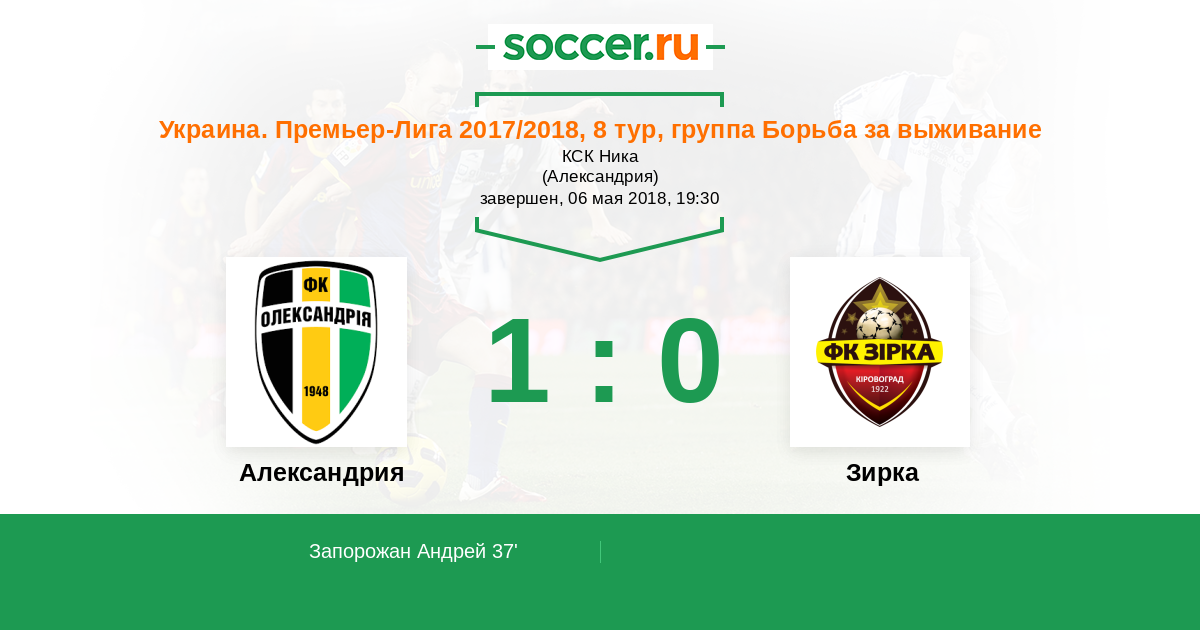 37' (1:0) Запорожан Андрей (15) (Старенький Сергей (27))