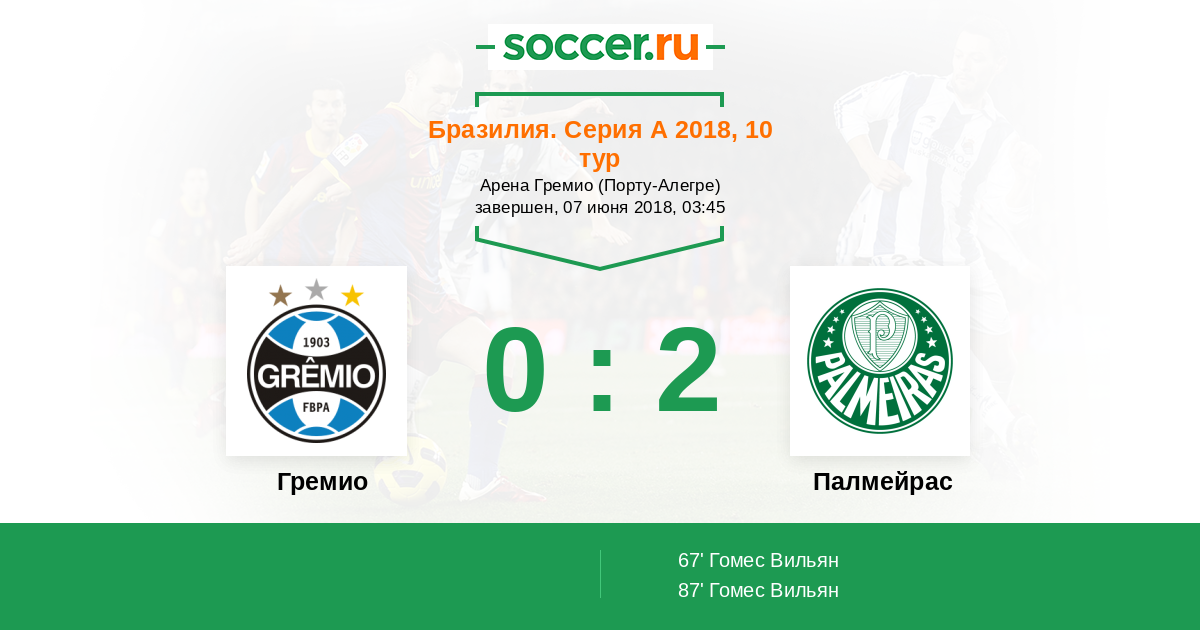 67' (0:1) Гомес Вильян (29) (Дуду (7))