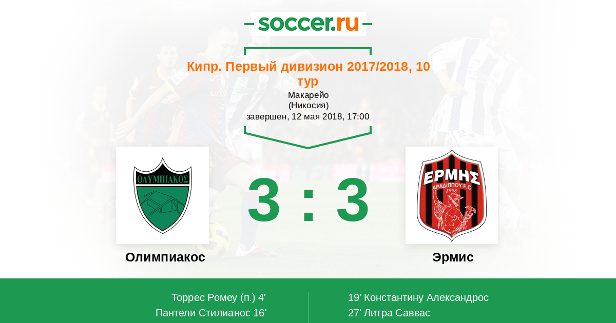 Запасные: 33 Андреу Панайотис (с 57'), 7 Пехливанис Мариос (с 60'), 34 Еролему Костас (с 80'), 1 Исли Хиди, 10 Хелдер Фернандо Феррейра Кастро, 27 Антониу Евгениос, 30 Зиабарис Николаос, 94 Трибо Йоанн