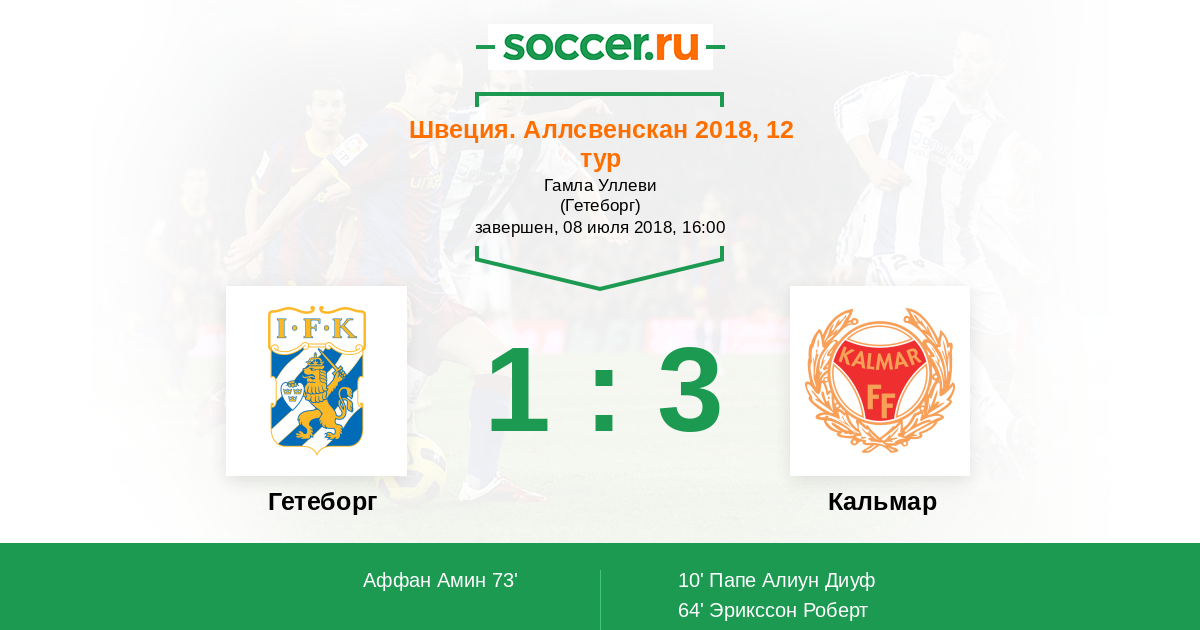 10' (0:1) Папе Алиун Диуф (27) (Седерквист Монс (9))