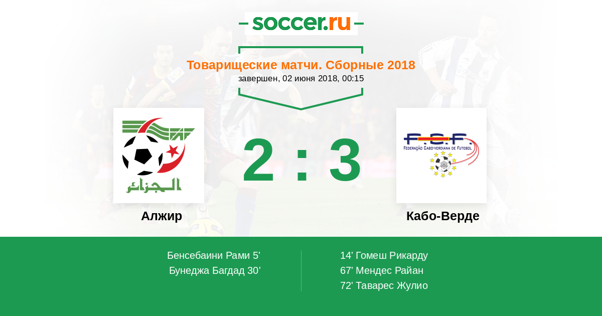 Запасные: Беннасер Исмаэль (с 58'), Слимани Ислам (с 73'), Меджани Карл (с 82'), Бенмусса Мохтар (с 85')
