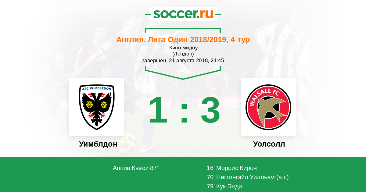16' (0:1) Моррис Кирон (8) (Кук Энди (9))