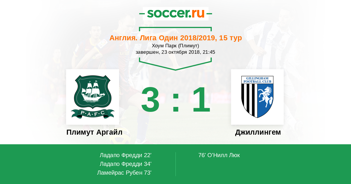22' (1:0) Ладапо Фредди (19) (Кэри Грехэм (10))
