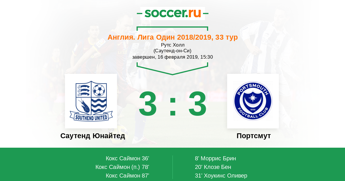 36' (1:3) Кокс Саймон (10) (Харт Сэм (42))