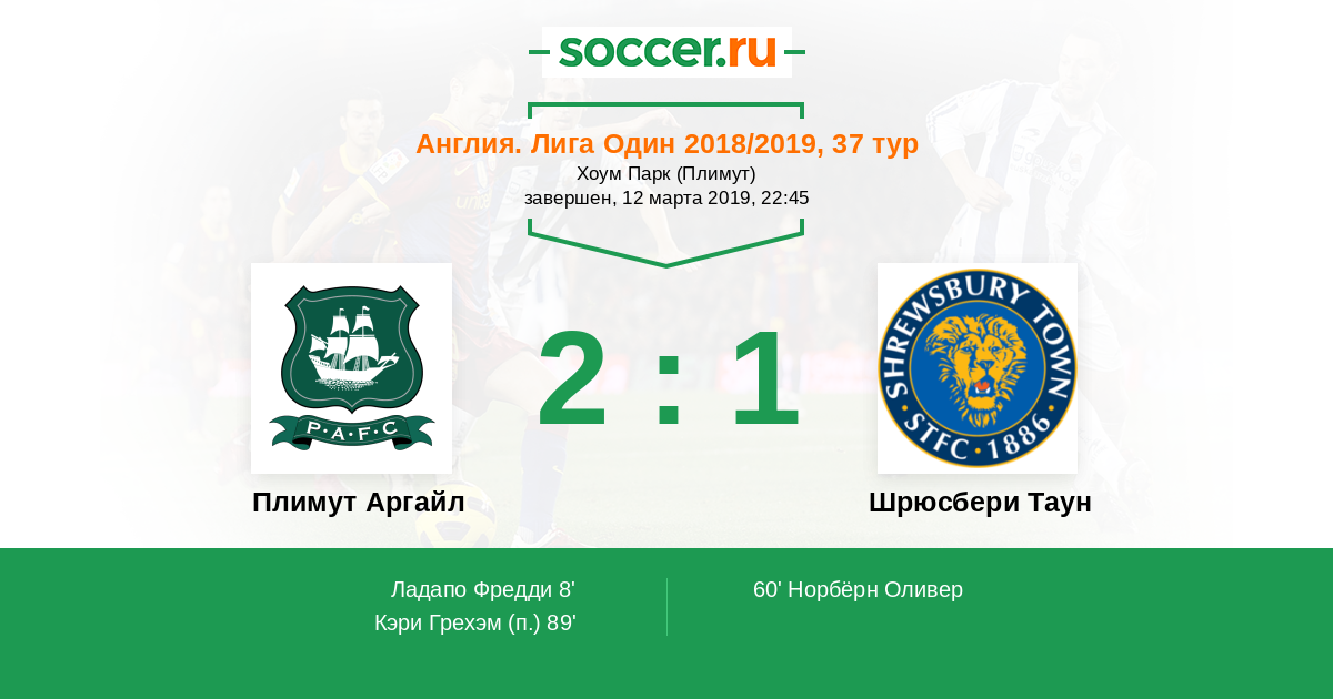 8' (1:0) Ладапо Фредди (19) (Фокс Дэвид (8))