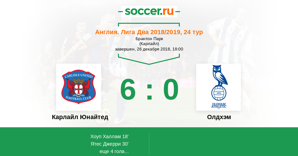 71' (5:0) Ятес Джерри (17) (Соверби Джек (18))