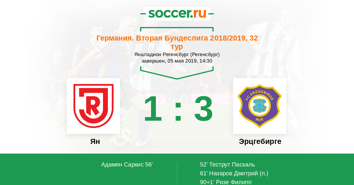52' (0:1) Теструт Паскаль (37) (Брайткройц Стив (12))