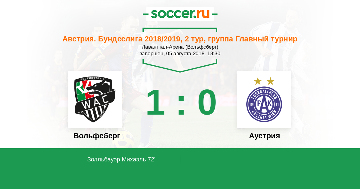 72' (1:0) Золльбауэр Михаэль (26) (Линдль Михаэль (10))