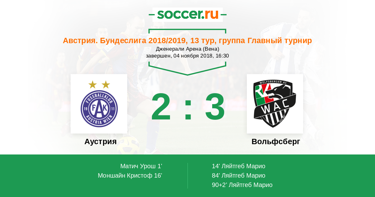 90+2' (2:3) Ляйтгеб Марио (16) (Линдль Михаэль (10))