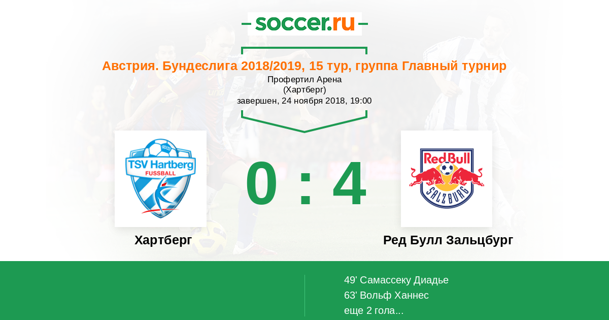 49' (0:1) Самассеку Диадье (8) (Вольф Ханнес (13))