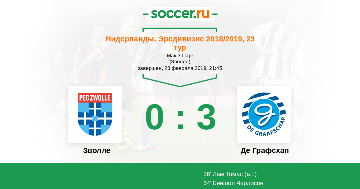 36' (0:1) Автогол Лам Томас (3)