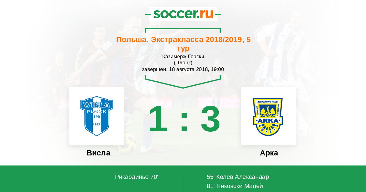 Запасные: 9 Швох Матеуш (с 57'), 23 Стилич Семир (с 63'), 11 Карлитос (с 67'), 26 Ласицки Игор, 6 Расак Дамиан, 87 Запытовски Марцель, 96 Луковски Якуб