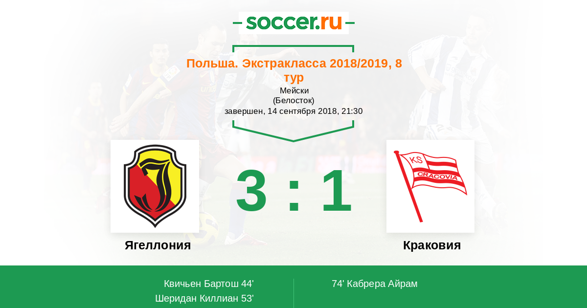 44' (1:0) Квичьен Бартош (99) (Гильерме Ситья (12))