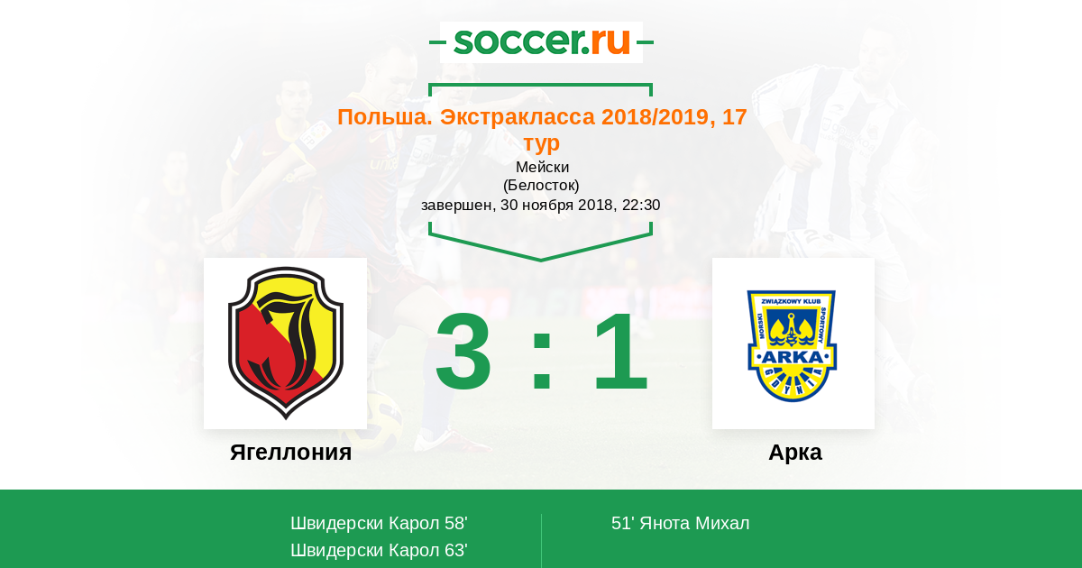 Запасные: 26 Данч Адам (с 19'), 11 Семашко Рафал (с 75'), 8 Винисиус Маркус (с 84'), 2 Соха Тадеуш, 18 Даньеляк Карол, 30 Кржепиш Кацпер, 44 Сулевски Роберт
