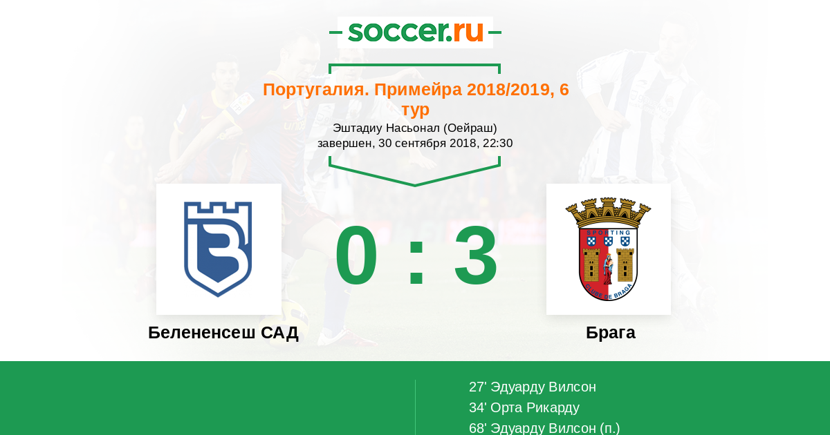 27' (0:1) Эдуарду Вилсон (7) (Орта Рикарду (21))