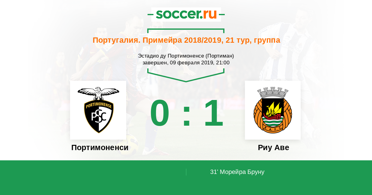 31' (0:1) Морейра Бруну (9) (Рейс Матеус (2))