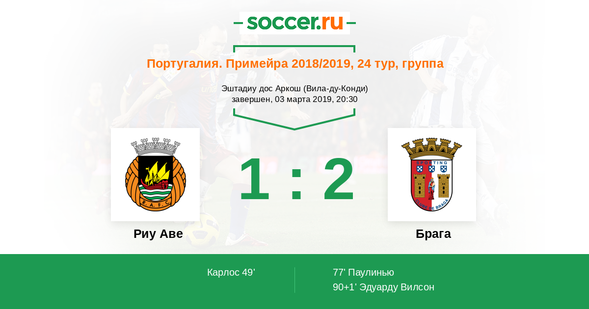 49' (1:0) Карлос (13) (Ронан (19))
