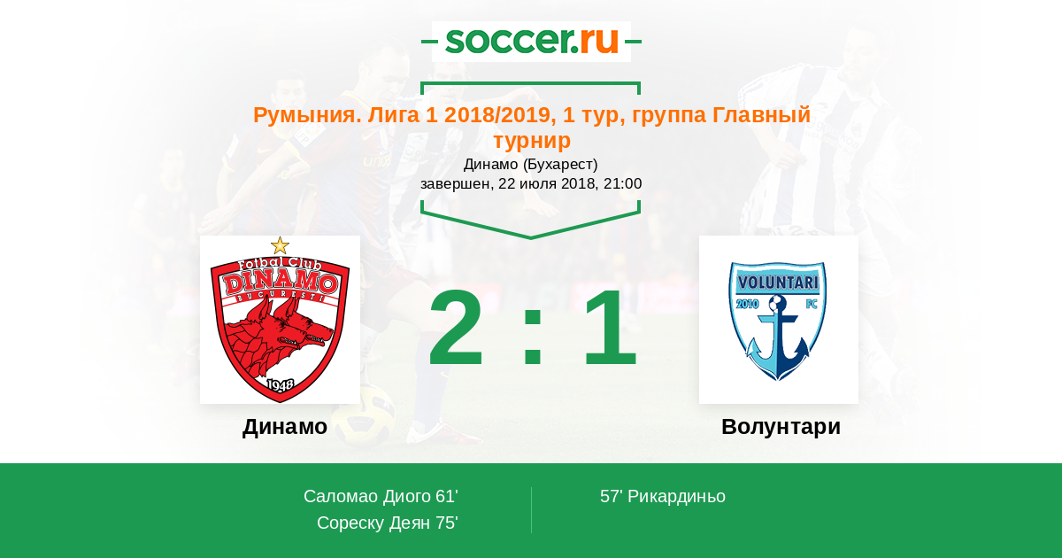 61' (1:1) Саломао Диого (20) (Нистор Дан (10))
