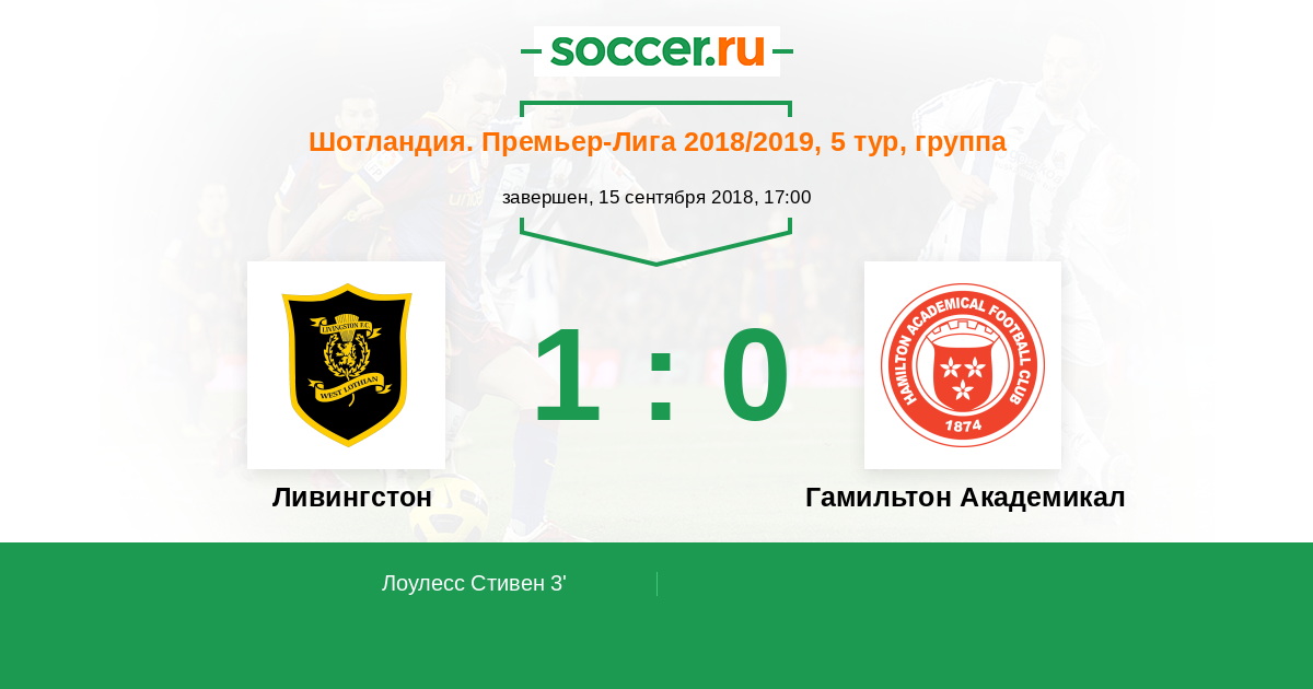 3' (1:0) Лоулесс Стивен (15) (Хэмилтон Джек (30))