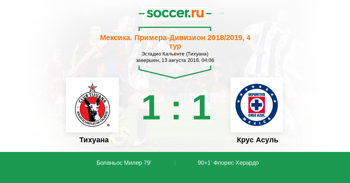 90+1' (1:1) Флорес Херардо (15) (Родригес Адриан (16))