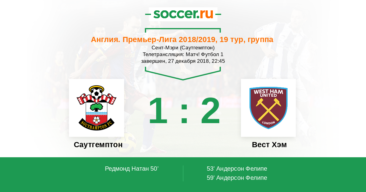 Запасные: 9 Кэрролл Энди (с 55'), 16 Нобл Марк (с 78'), 26 Масуаку Артур (с 90+2'), 13 Адриан, 32 Силва Алешандре, 54 Ковентри Конор