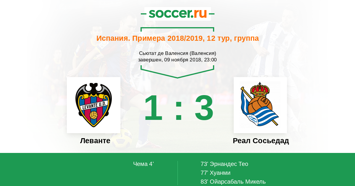 73' (1:1) Эрнандес Тео (19) (Ойарсабаль Микель (10))