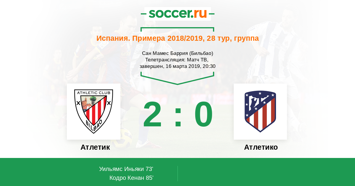 73' (1:0) Уильямс Иньяки (9) (Кордоба Иньиго (11))