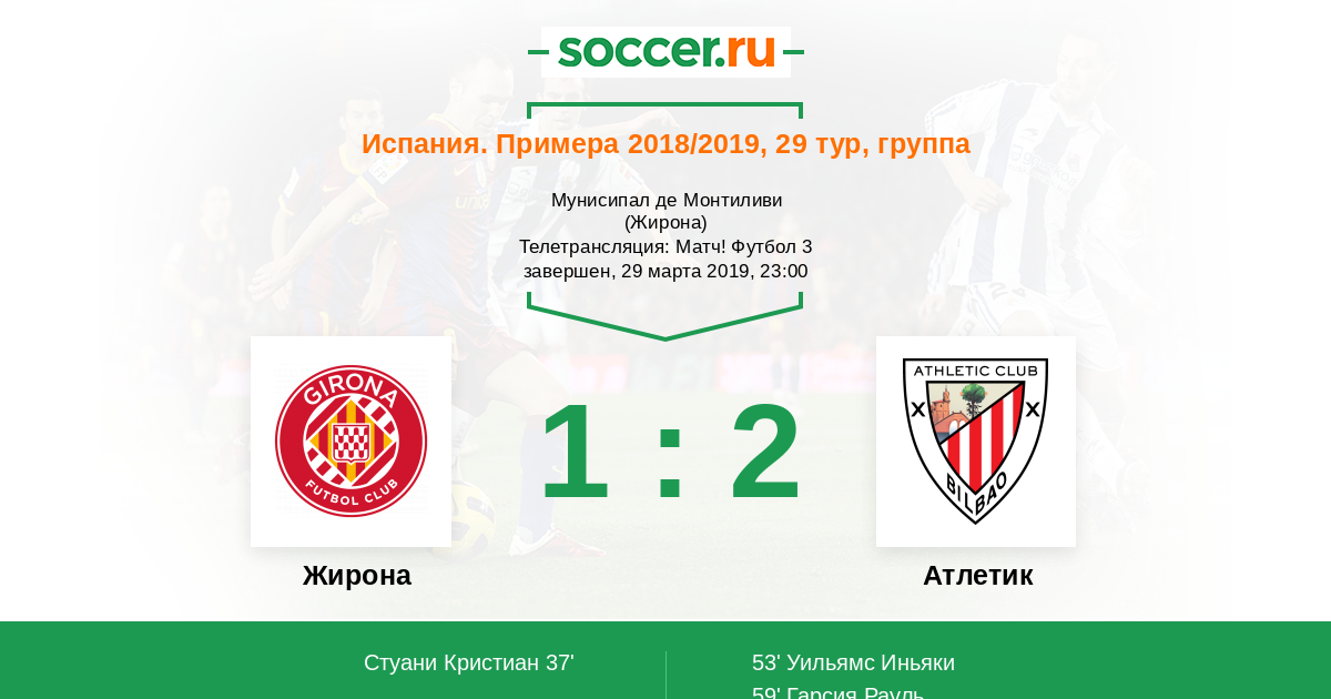 59' (1:2) Гарсия Рауль (22) (Уильямс Иньяки (9))
