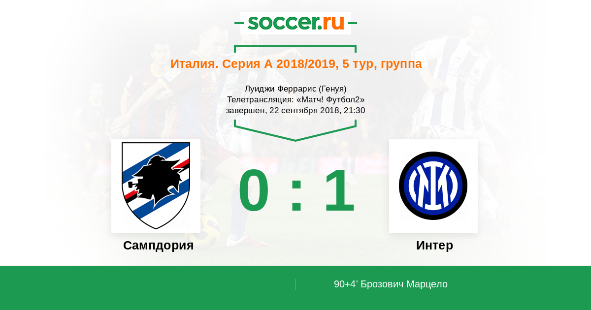 Запасные: 5 Гальярдини Роберто, 6 де Врей Стефан, 44 Перишич Иван (с 60'), 29 Дальберт, 27 Паделли Даниэле, 13 Раноккья Андреа, 20 Валеро Борха (с 83'), 15 Мариу Жоау, 11 Кейта Бальде (с 70'), 10 Мартинес Лаутаро