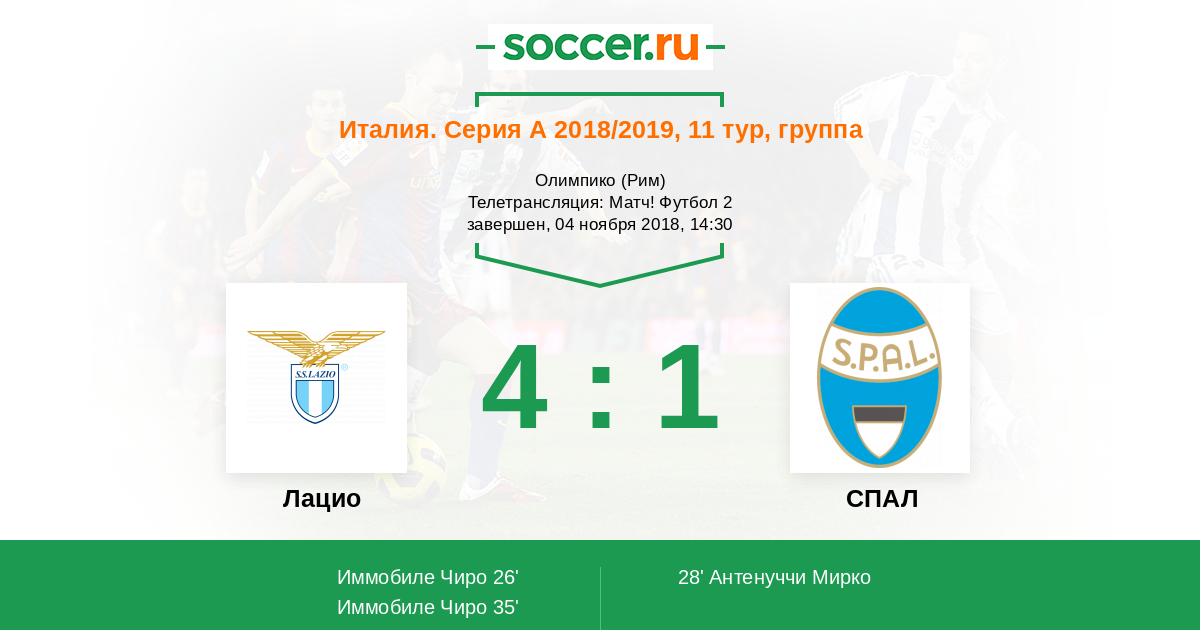 26' (1:0) Иммобиле Чиро (17) (Катальди Данило (32))